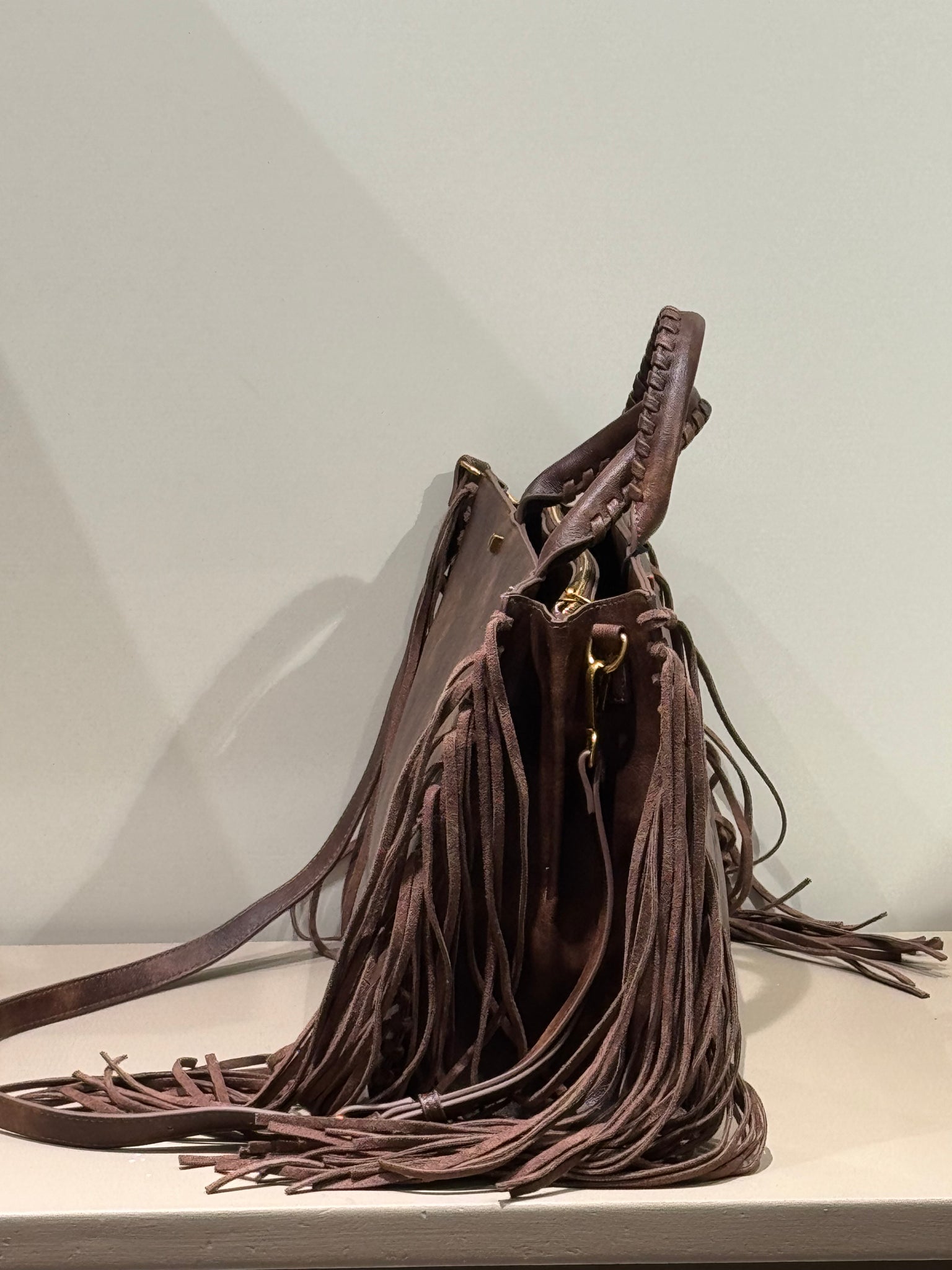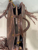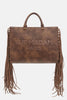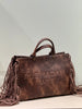 - Tote bag in ecopelle effetto vintage con logo impresso e frange in eco-camoscio