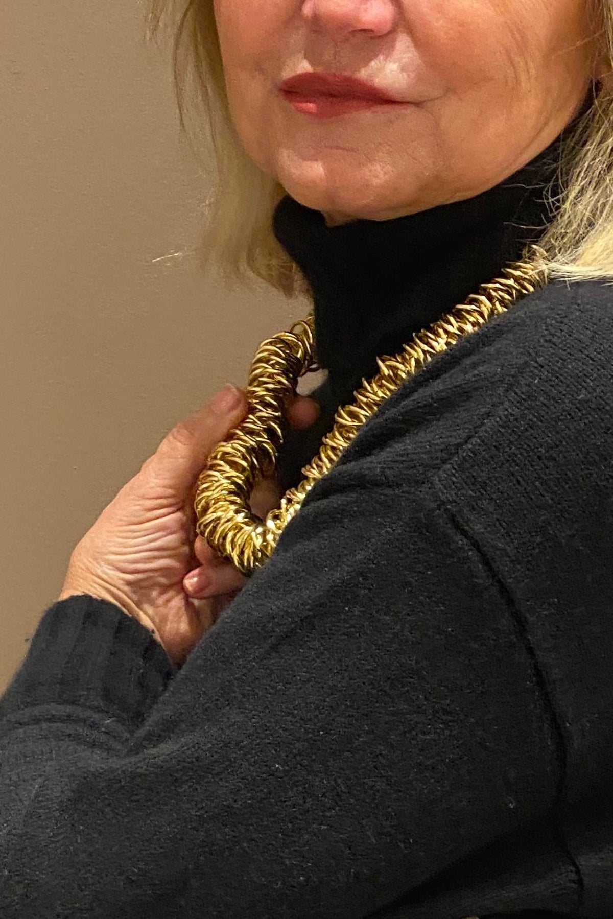 - Girocollo composto da splendenti anelli intrecciati in una versione dalle cromie dell'oro