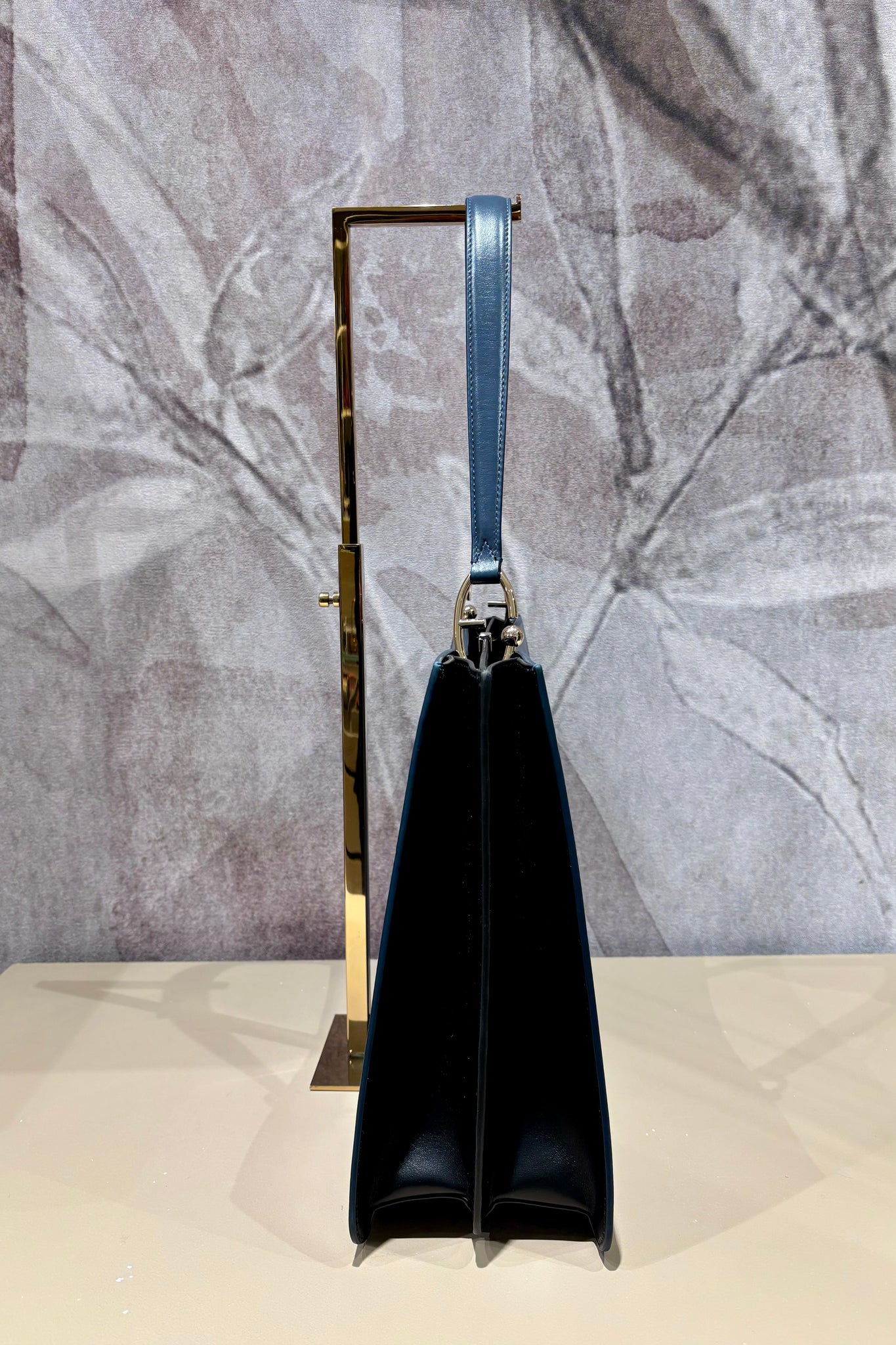 - Borsa a spalla in morbida pelle liscia a due scomparti con chiusura a doppio incastro